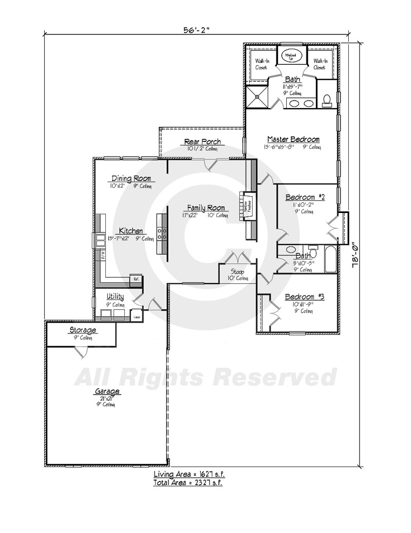 Description: This may be the three bedroom two bath Country French house plan for you. You will find a nice size kitchen 13’ 7” x 12’ with enough counter space for all your cooking needs. Connected to the kitchen is the dining room which lets plenty of light into the space with its three large windows overlooking the back of your property. The family room features a ventless fireplace and a door to access your rear covered porch. In the master suite you will find his and her walk in closets with 2 sinks, a whirlpool tub and separate shower. The other two bedrooms are down the hall from the master and share a bathroom. The garage can house 2 cars and has a storage area. We hope you will enjoy this Country French home if you decide it fits your Louisiana style home plan needs.