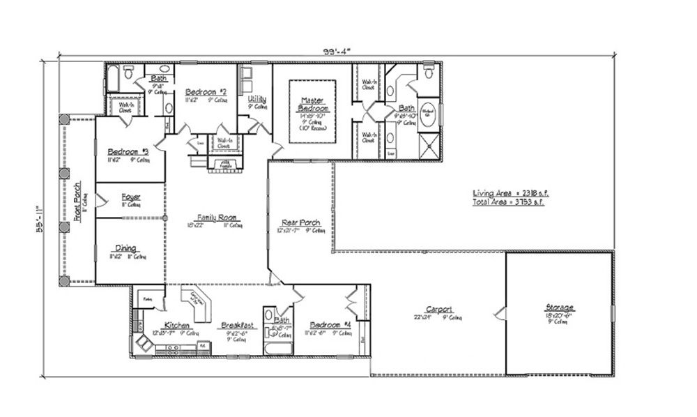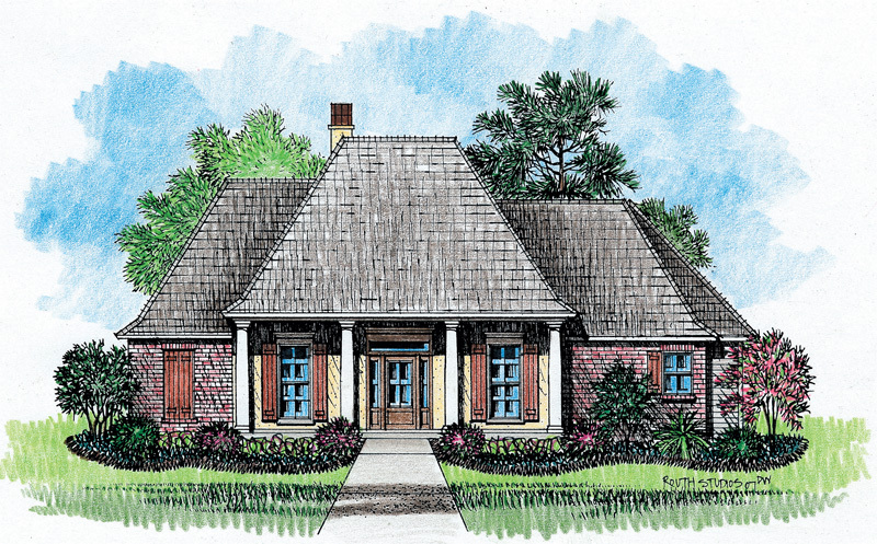 Description: Southern Louisiana Acadian House Plan with the classic front porch and four pillars. The floor plan is open with a spacious family room, formal dining room, breakfast area and kitchen. The kitchen has a large angled island with a bar, a corner sink looking out into the front of your lot and walk in pantry. Moving to the master suite, one of four bedrooms, you will find a stunning recessed ceiling with his and her walk in closets. Past the closet you find your master bath with two vanities, whirlpool tub and separate shower. Two of the other bedrooms have walk in closets and are of good size. The forth is also good sized and could be used as a home office if desired. In the rear of the home plan you will find a two car carport with a large enclosed storage area that could be used to house another car or boat. You will find the Raven Southern Louisiana Acadian home plan a pleasure to live in. |