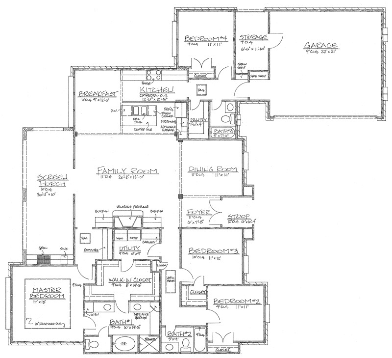Description: A classic country french look makes this plan very desirable. Starting in the master bedroom you will be delighted with the 10’ recessed ceiling and large windows. Your master bath features a large tub and separate shower with a large walk-in closet with easy access to the utility room for dirty clothes. Two of the other bedrooms share a bath and have large closets. The 4th bedroom is off the kitchen with its own bath and would be great for an older child or guests. There is a two car garage with a large storage area attached. Now to the kitchen where you will find a cathedral ceiling that opens into the family room and has a breakfast area. In the family room there is a fireplace with 2 large built in on either side, and the perfect place to mount your flat screen TV. Outback you will find yourself never wanting to go back inside because of the screened porch and outdoor kitchen great for entertaining or watching a game. You will enjoy this Country French home plan that has just a few touches of Louisiana.