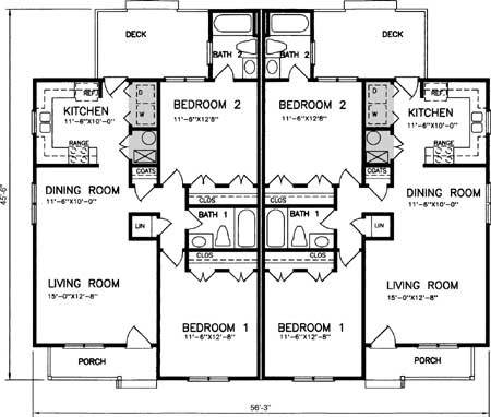 | Description: Two-bedroom, two-bath traditional duplex. |