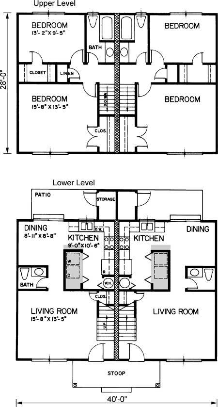 | Description: 2 story duplex, 2 bedrooms, 1 1/2 baths each, W/D closet, sheltered front stoop, sliding glass door from dining to patio |