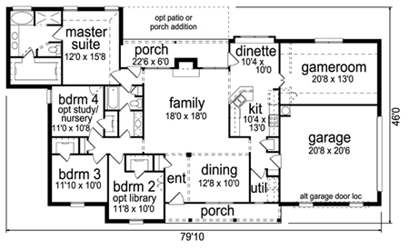 | Description: What's old is new - this comfy plan is reminiscent of the 40's - but w/better storage. Family oriented plan w/large gameroom, walk-in closets & covered porches front & back, this kid-friendly home is perfect for you.