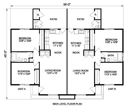 | Description: This traditional Duplex features two bedrooms and a full bath in each unit. Plan includes optional Active Solar Details.