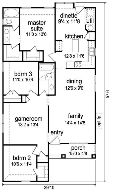 | Description: Plan has 2 dining areas, generous closets & a gameroom for under 1500 sq.ft. Charming craftsman style elevation invites your friends into open living areas. Also available as a 4 bedroom/delete gameroom.