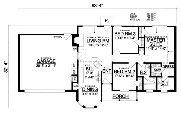 Description: This one story country home is very affordable. The large living room has a 10-foot high-sloped ceiling with a warm fireplace and opened to the kitchen. The kitchen has a raised snack bar, walk in pantry and dining room with a bay window. The large master suite has 10-foot sloped ceiling and a bath with a dressing room and walk in closet. The two additional bedrooms share a convenient hall bath.