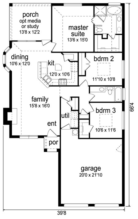 | Description: Easy to live in plan is perfect for a young couple or retiree alike. Open living makes entertaining easy with generous kitchen & back porch handy for barbeques. Upscale master bath & extra closet space make this plan feel larger than it is.