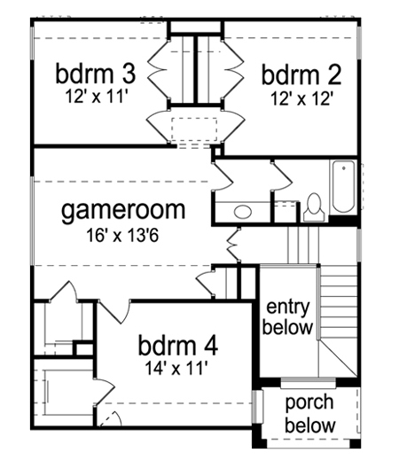 | Description: Flexibility for a growing family, but on a narrow lot. Flex room can be a formal living, dining, study or bedroom. Large kitchen has ample space to cook for a large family. 3 bedrooms share a generous sized gameroom upstairs. And the simple, but classy elevation invites in all visitors. |