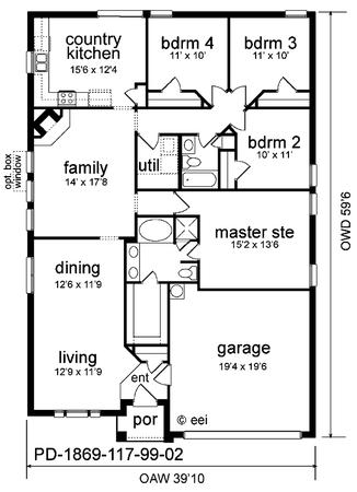 | Description: Do you have a small lot and a large family? This four bedroom with formal living/dining is the plan for you. At less than 50 feet wide, this all brick home has a large country kitchen with dinette and utility room conveniently located in the center of things. The private master suite boasts a garden tub, shower, and large closet.