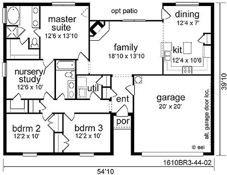 | Description: A lot of house in little footage! This plan boasts an island kitchen, indoor utility, extra storage & separate master shower. The master suite has direct access to a study/ nursery making this great for new families and home officing.