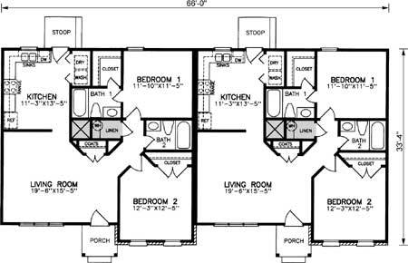 | Description: 1 story duplex, 2 bedrooms, 2 baths, great/gathering room, breakfast-rm-size kitchen, W/D closet, front porch, back stoop |