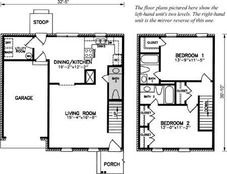 | Description: 2 story duplex, 2 bedrooms, 2 1/2 baths, formal LR, kitchen/dining area, laundry room, 1-car garage, front porch, back stoop |