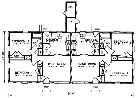| Description: 1 story duplex, 2 bedrooms, 1 bath, living/dining and/or kitchen/breakfast, front & back stoops |