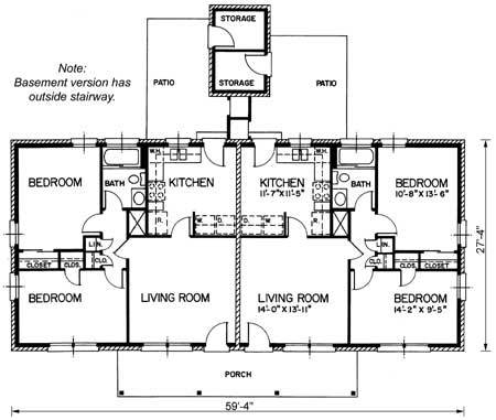 | Description: 1 story duplex, 2 bedrooms, 1 bath, LR/dining, outside storage, front porch, back patio |