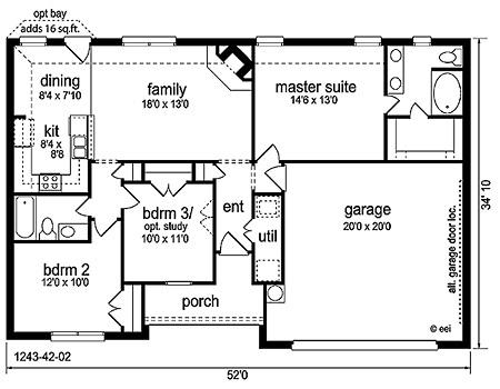 | Description: A quaint country elevation invites you onto a covered front porch. Separate master suite has large walk-in closet & double vanity. Bedroom 3 can option as a study for empty nesters. Optional bay expands the dining room.