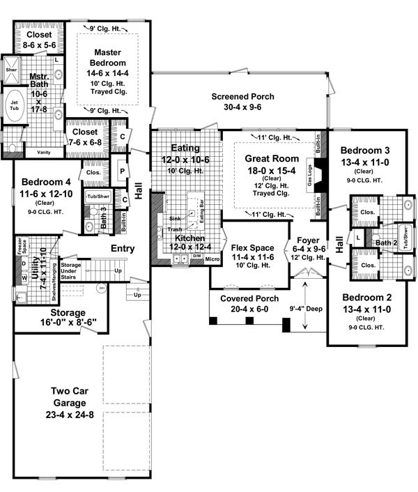 Description: This inviting home has European Country styling with upscale features. The large front and rear porches add plenty of usable outdoor living space, and include easy rear access to the master suite. Expansive great room includes a beautiful trayed ceiling and features built-in cabinets and a gas fireplace. The spacious kitchen features an oversized island with a large eating bar and breakfast area. The hall bath is equipped with dual lavatories for convenience. The master bedroom has a raised ceiling and opens into the well-equipped bath with dual lavatories, oversized jet tub, and large his and her walk-in closets. There is a storage area off the garage for projects and storage. This house also features a Study that could be used as a home office, dining room, or playroom. This is a very flexible home with plenty of options to choose from. An excellent floorplan layout and a great value for your family! |