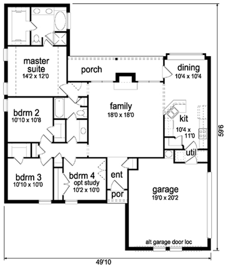 | Description: Timeless plan is great for a growing family on a budget. 3 bedrooms w/generous closets share a hall w/extra storage. Bath has access from the oversized back porch also. Private master suite has a garden tub, separate shower & large closet. Comfortable family room is open to the kitchen. Note the walk-in pantry, & box window in the dining. Simple, but stylish elevation features 2 gables & decorative windows.