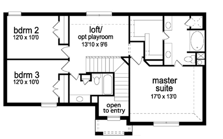 | Description: This perfect plan for a new family has generous rooms, but is economical to build. Large closets, study loft & 2 story entry are bonuses. Oversized master suite has room for an optional separate shower.