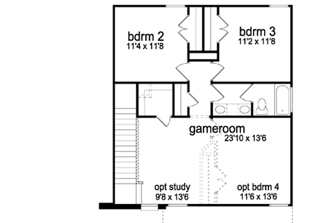 | Description: Economical has never been this luxurious! Large rooms, generous closets, & extra features make this plan perfect for a growing family on a budget. Note the gameroom can be modified to a 4th bedroom with a study.