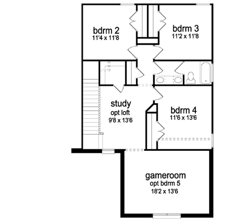 | Description: Plan has lots of living under one roof. Open family/kitchen area are great for family gatherings. Generous master suite is hidden away with a spacious closet & separate shower. 3 bedrooms share a study loft & gameroom upstairs. Economical elevation has stone detailing & eyebrow windows.