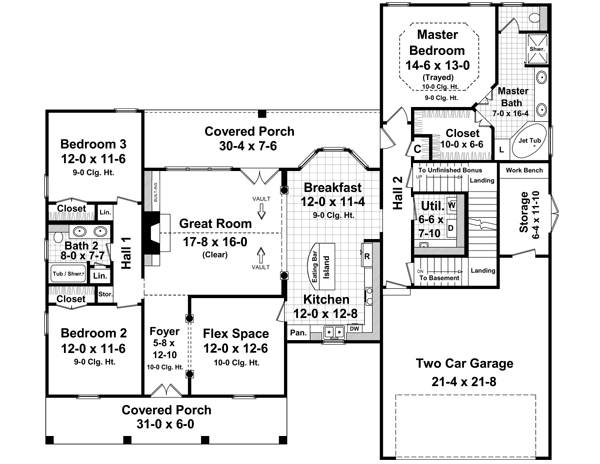 Description: This inviting home has Country styling with upscale features. The front and rear covered porches add usable outdoor living space. Great room is vaulted with built in cabinets and gas fireplace. The spacious kitchen has an island with an eating bar. The hall bath is equipped with dual lavatories for convenience. The master bedroom has a raised ceiling and opens into the well equipped bath with dual lavatories, corner tub and walk in closet. There is a shop area off the garage for projects and storage. Future space upstairs could be a playroom, extra bedroom, or just extra storage. The flex space could be used as a home office, dining room, or playroom. This is a very flexible home with lots of options to choose from. |