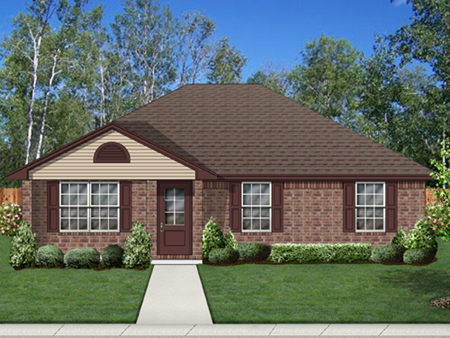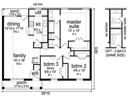| Description: Front & back covered porches on this diverse floor plan. 3rd bedroom can be converted into a library or playroom for the kids. Note option on the floor plan for a 2nd bath for bdrm's 2 & 3. |