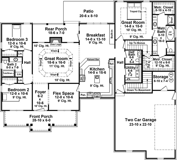 Description: Looking for the house that has it all? Then look no further. This beautiful country design features all the things that make a house a home. Three over-sized bedrooms are complimented by large closets, and the flex space provides a perfect spot for that home office, playroom, or dining room. A breakfast area, and raised bar all provide spaces for those family meals with close access to the fully equipped kitchen. The great room includes gas logs, a trayed ceiling, and beautiful views to the covered rear porch beyond. The master bedroom also features trayed ceilings and the master bathroom leaves nothing to be desired. The expansive garage provides plenty of room for oversized trucks and SUV's and also includes a large storage area. The bonus room provides space for future expansion or for additional storage. This is the perfect home for you and your family! |